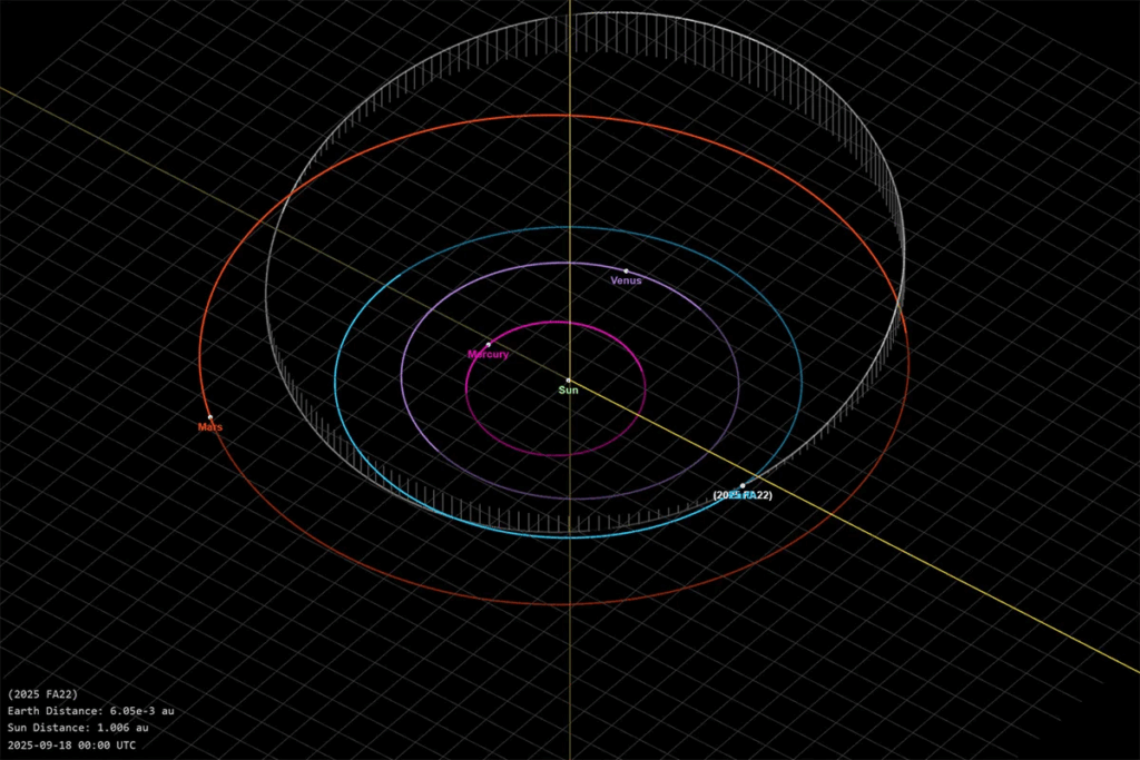 “Uno de los asteroides más grandes de este año, el 2025 FA22, pasará a una distancia de la Tierra ligeramente mayor que el diámetro de la órbita lunar, y se acercará a la distancia mínima con el planeta alrededor de las 10:00 h de Moscú (1:00 h del tiempo del centro de México)”, indicó el centro de investigaciones científicas en su portal oficial.