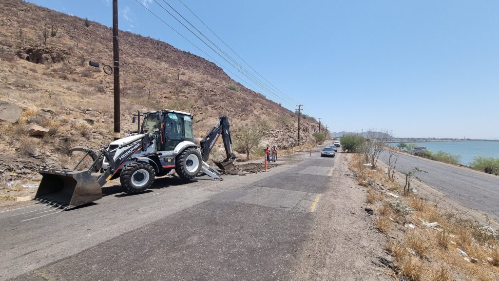 Guaymas, Son. – Con el retiro de los tramos más dañados de la cinta asfáltica, avanzan los trabajos de rehabilitación de la carretera Guaymas – Empalme, en el tramo que va desde la calle 25 hasta el Puente Douglas.