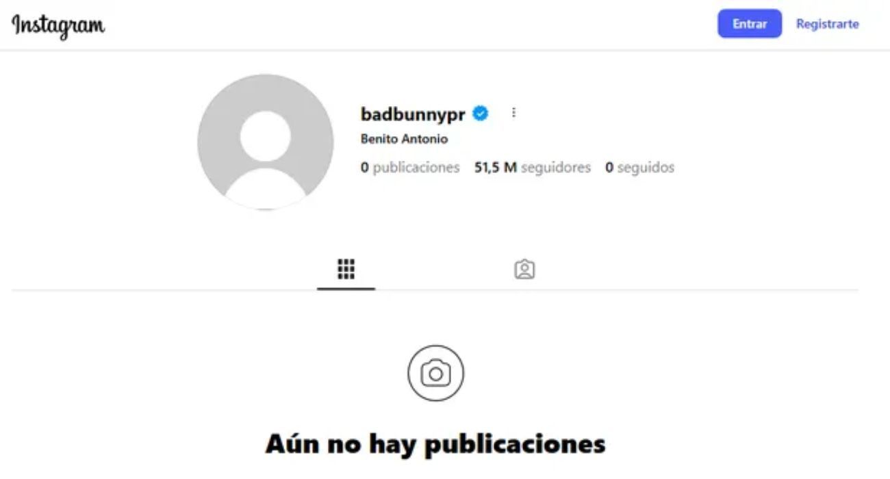 Bad Bunny ha eliminado todas las publicaciones de su cuenta de Instagram, e incluso borró su foto de perfil, lo que ha causado sorpresa entre los 53 millones de seguidores que el puertorriqueño tiene en la red social.