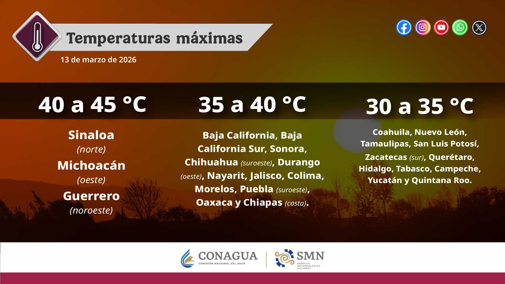 — CONAGUA Clima (@conagua_clima) March 13, 2026