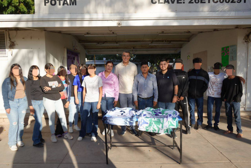 Posteriormente, como parte de las acciones para apoyar el desarrollo deportivo entre la juventud, el diputado federal Ramón Flores acudió al CECyTE Pótam, donde se realizó la entrega de uniformes para los equipos varonil y femenil de voleibol de la institución.
