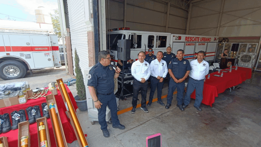 Guaymas, Son. En el marco del día nacional del Bombero se llevó a cabo en la Estación # 2 (Norte) ceremonia de conmemoración donde además el Patronato de Bomberos Guaymas hizo entrega de 2 ambulancias , equipo de buceo de rescate, equipo de rescate para cargas pesadas (marca Paratech), uniformes (marca 5.11) y botas ,con una inversión cercana a los 2 millones de pesos, asi lo informó el Presidente del Patronato Oscar Avila Valdez.