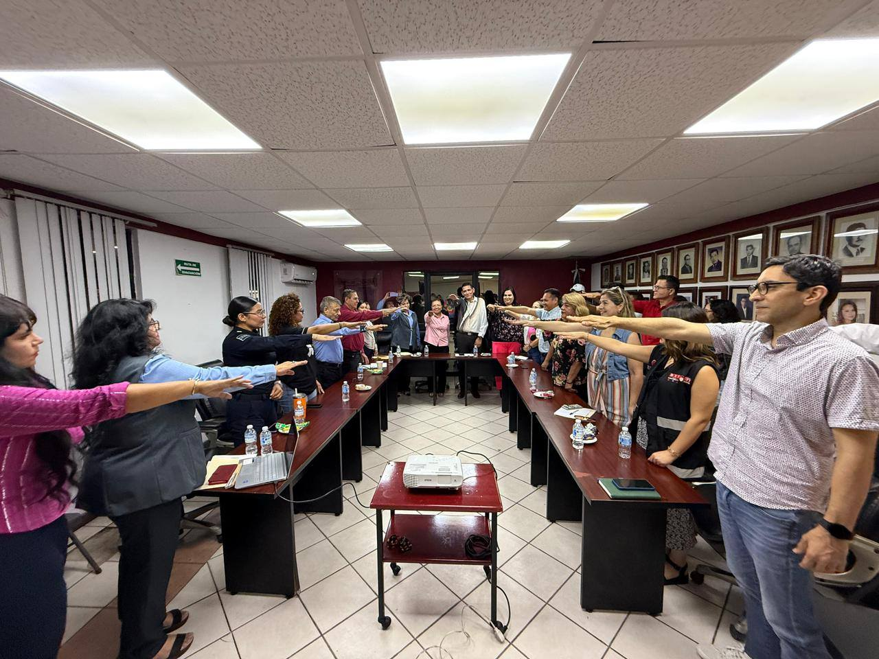 En la sesión estuvieron presentes la secretaria del Ayuntamiento, María Luisa Villaseñor Angulo; la regidora Dora Olivia Cuen; Janeth Espinoza Sánchez, coordinadora de Programas Preventivos de Seguridad Pública; Óscar Córdova, jefe de Tránsito Municipal; Ramón Vazquez Robles, jefe de personal; Carmen Teresa García Arellano, titular de Desarrollo Social; Miguel Ángel Llanez, coordinador del Instituto Municipal de la Juventud.