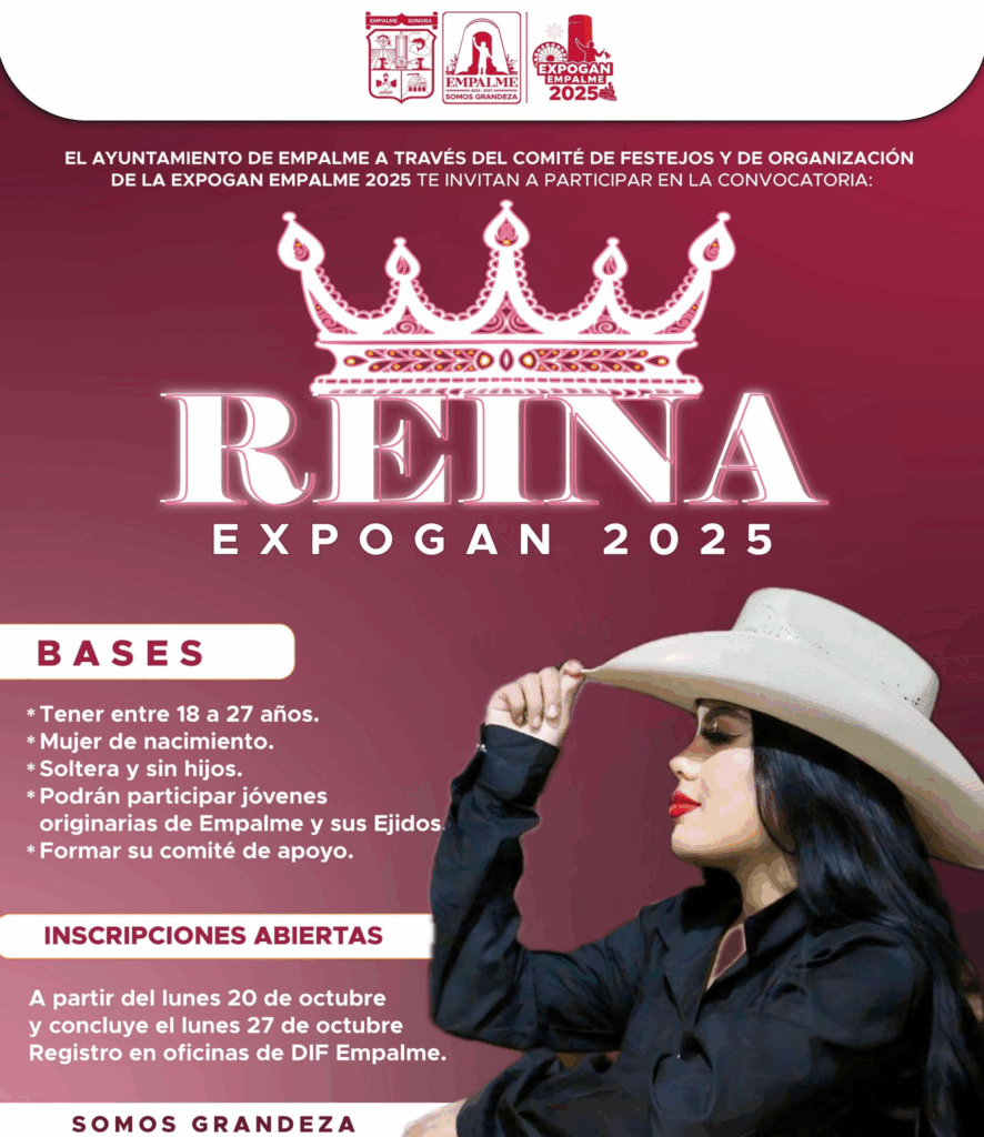 Empalme, Sonora.- El Ayuntamiento de Empalme, a través del Comité de Festejos y de Organización de la Expogan Empalme 2025, te invita a formar parte de esta gran tradición.