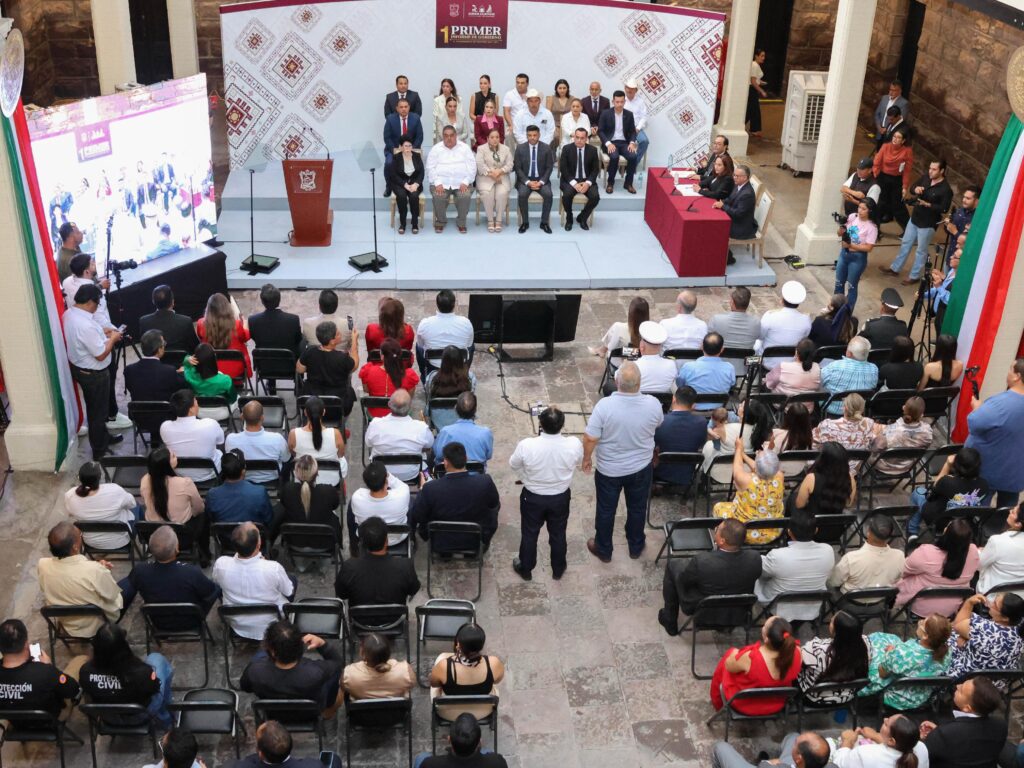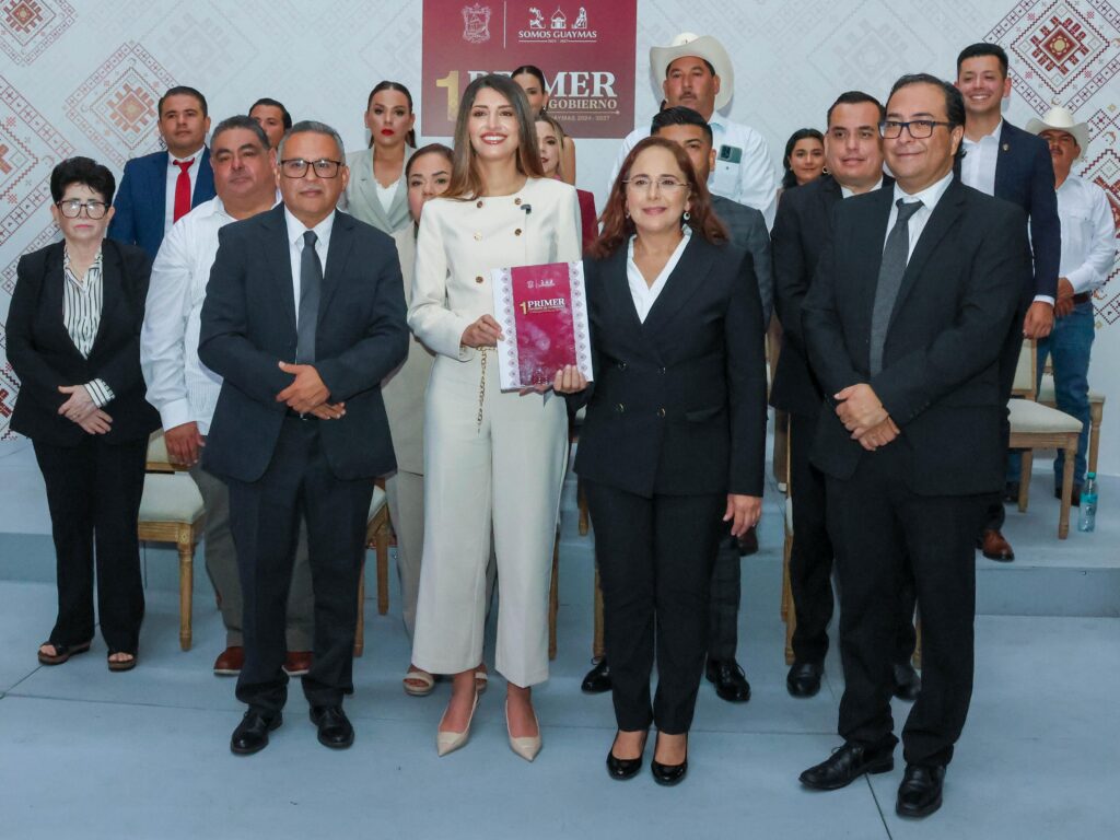 Guaymas, Sonora, 16 de septiembre de 2025.- Esta mañana, en la sesión solemne número 24 de Cabildo, la presidenta municipal de Guaymas, doctora Karla Córdova González, presentó ante la ciudadanía y autoridades el Primer Informe de Gobierno de la administración 2024-2027, donde expuso los resultados alcanzados durante el primer año de gestión, con base en el Plan Municipal de Desarrollo que establece cuatro ejes rectores para consolidar una administración más cercana a la gente, ordenada, segura, con oportunidades de crecimiento económico y servicios públicos de calidad.