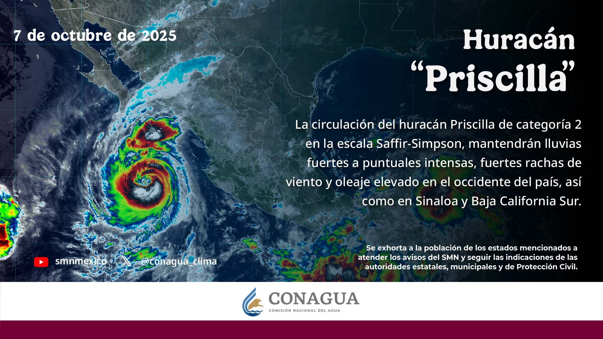 ⚠️El #Huracán #Priscilla se localiza al sur de #BajaCaliforniaSur.