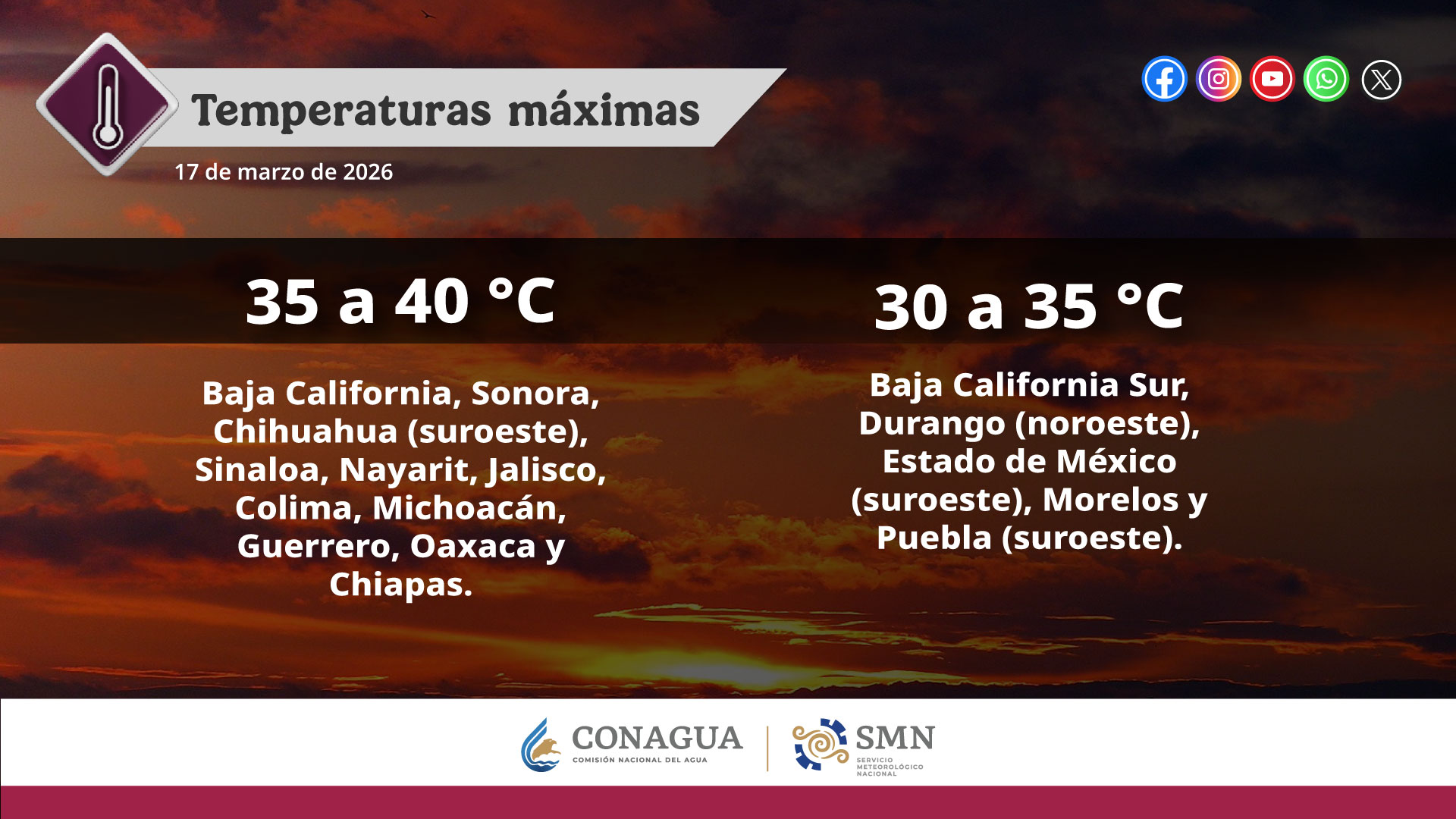 — CONAGUA Clima (@conagua_clima) March 17, 2026