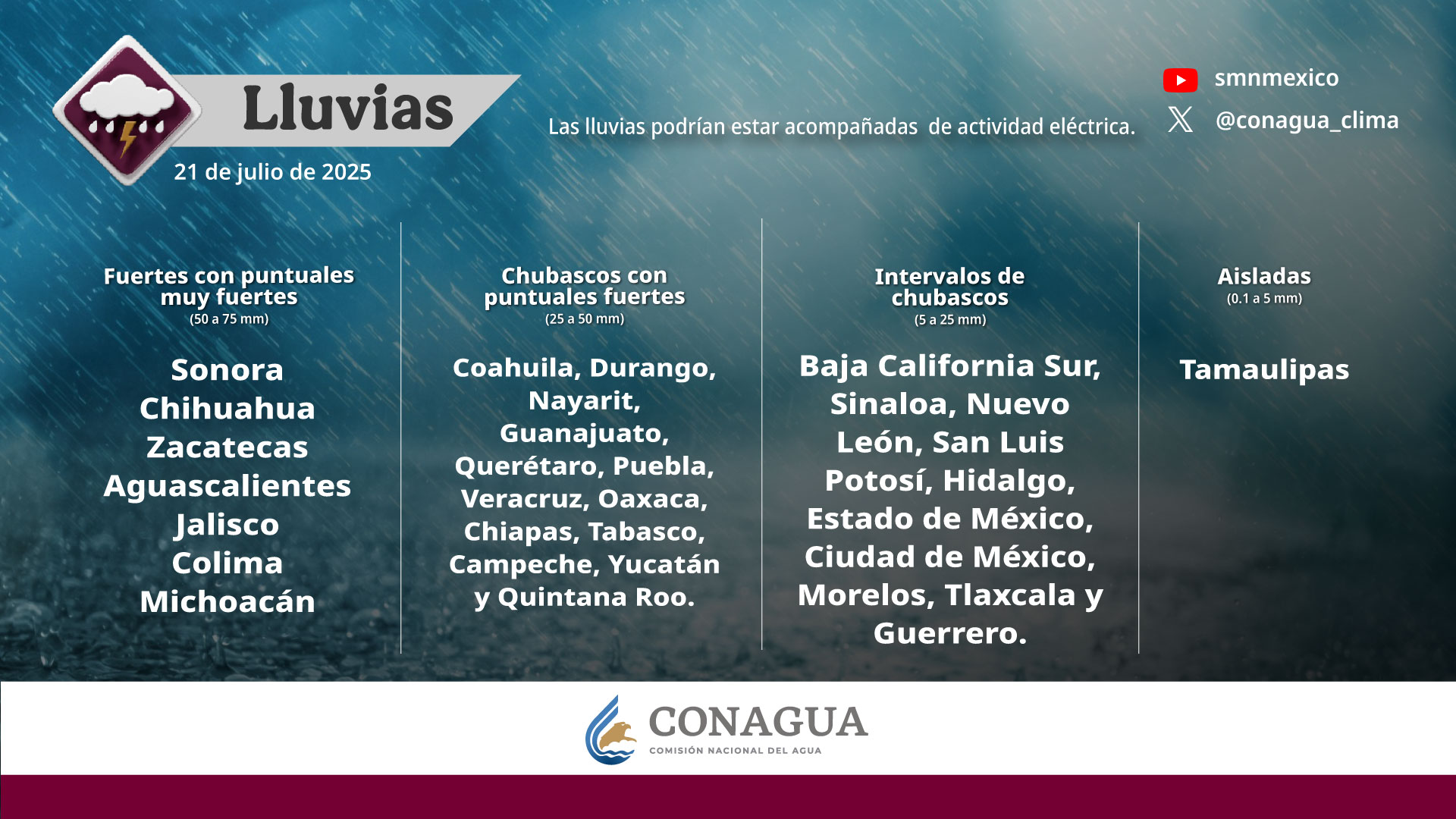 — CONAGUA Clima (@conagua_clima) July 21, 2025