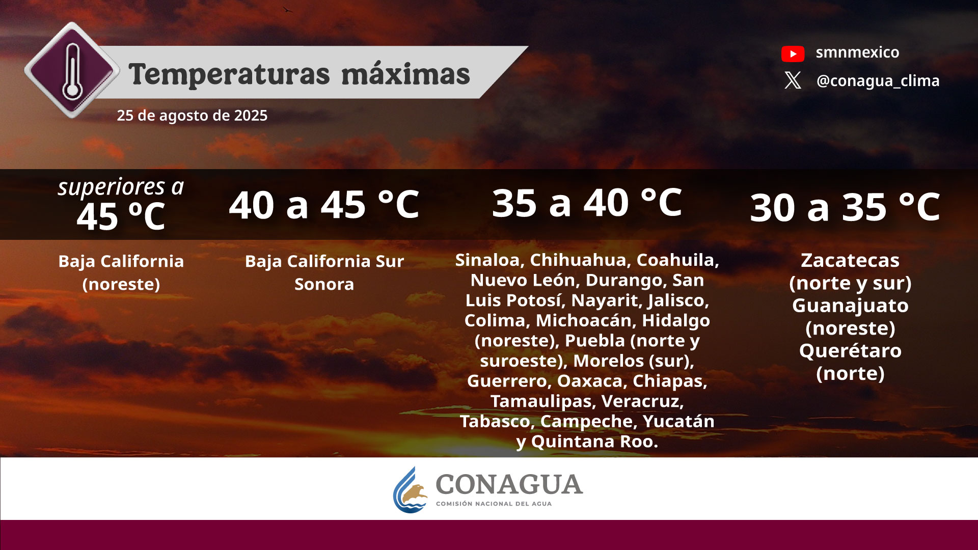 — CONAGUA Clima (@conagua_clima) August 25, 2025