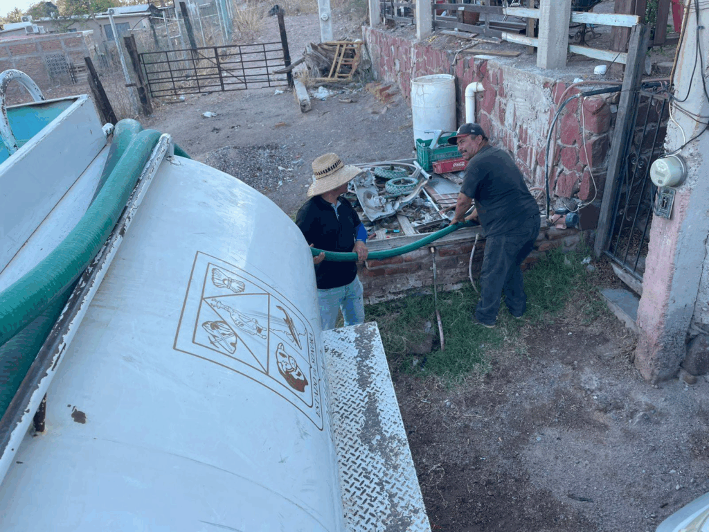 Empalme, Sonora.- Con el apoyo del Gobierno del Estado, esta tarde se abasteció con pipas de agua a vecinos de las colonias Juárez, Jordan y otros sectores.