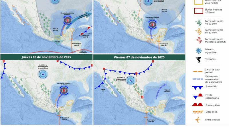 Read MorePara este jueves se pronostican lluvias puntuales fuertes (de 25 a 50 milímetros [mm]) en regiones de Oaxaca (suroeste), Tabasco