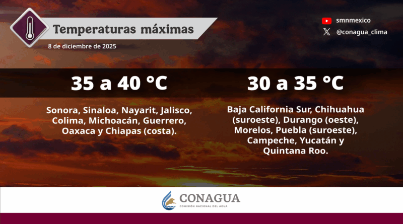 Se esperan temperaturas máximas serán de 35 a 40°C en Sonora, Sinaloa, Nayarit, Jalisco