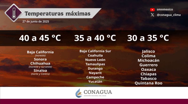 Continuará el ambiente de caluroso a muy caluroso por la tarde sobre el noroeste y norte del territorio mexicano