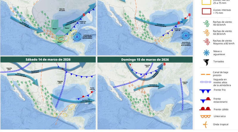Read MoreHoy, viernes, se pronostican lluvias puntuales fuertes (de 25 a 50 milímetros [mm]) en regiones de Chiapas, Campeche y Quintana