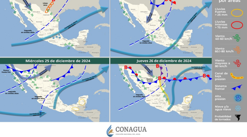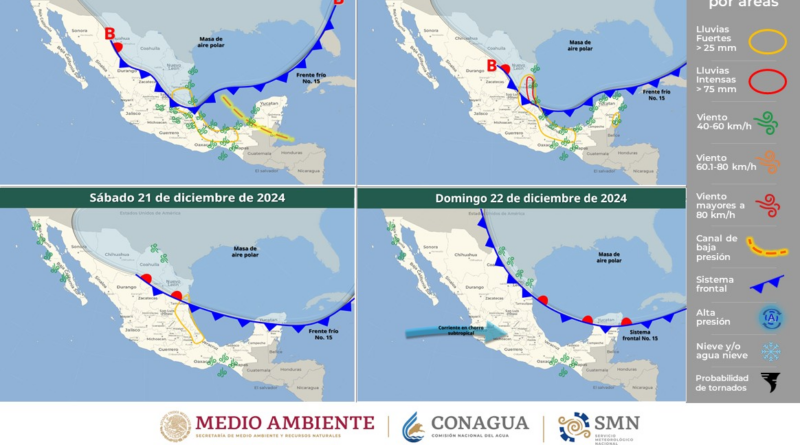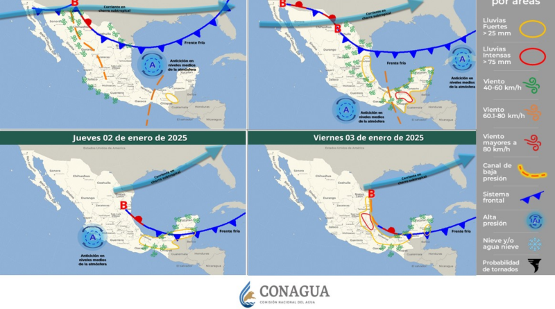 El frente frío número 20 en su desplazamiento por el norte y noreste de México, la corriente en chorro subtropical