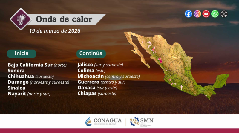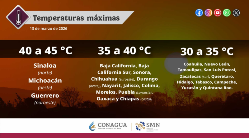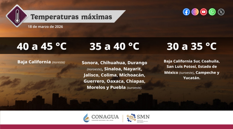 Se prevén temperaturas máximas de 35 a 40°C en Sonora, Sinaloa. Nayarit, Jalisco, Colima