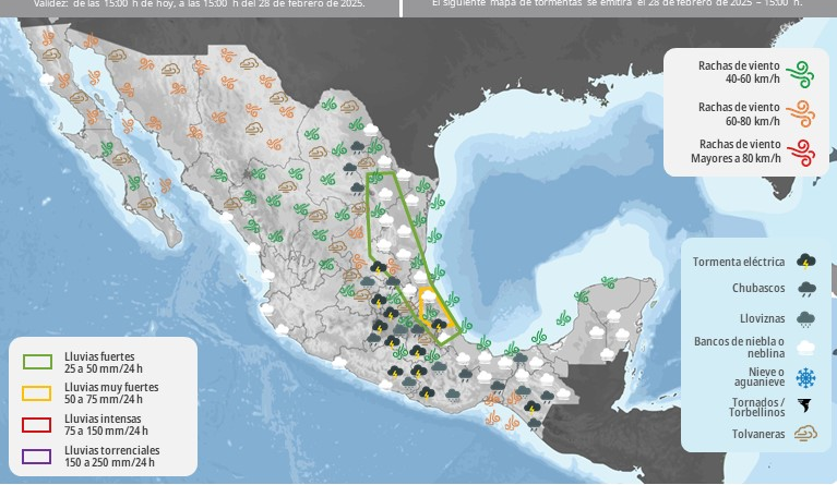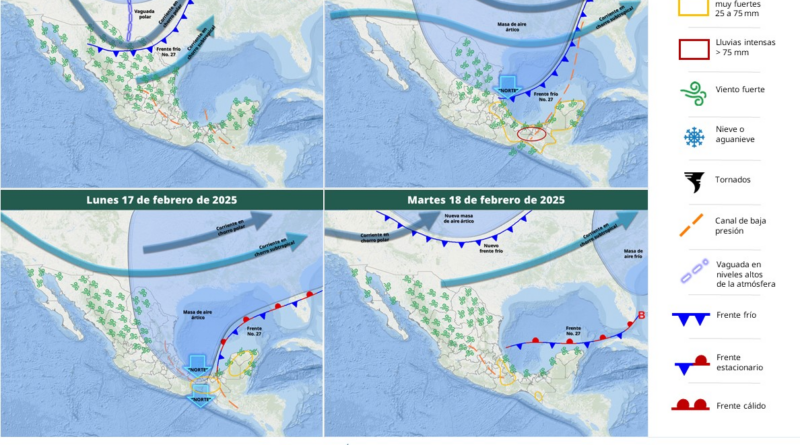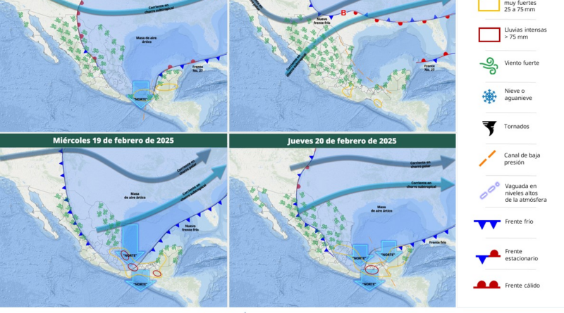 Read MorePara este viernes se pronostican lluvias muy fuertes (de 50 a 75 milímetros [mm]) en Veracruz, Tabasco y Chiapas; fuertes