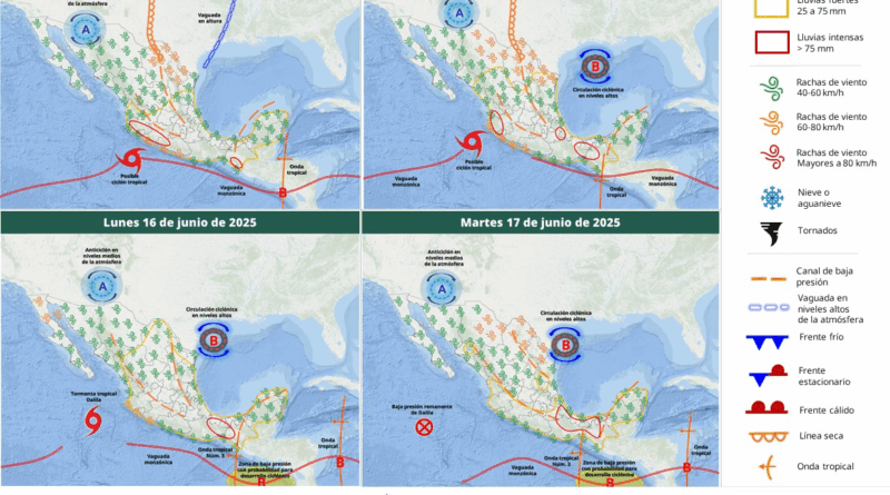 Read MoreLa tormenta tropical “Dalila” genera lluvias intensas, rachas de viento y oleaje elevado en al menos cinco estados mexicanos, mientras avanza de