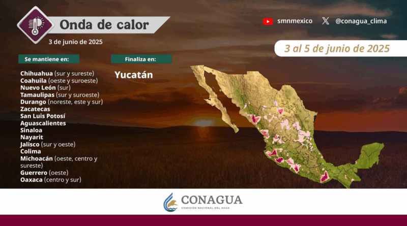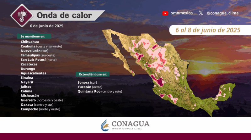 Prevalecerá el ambiente de caluroso a muy caluroso sobre gran parte de la República Mexicana, con temperaturas máximas de 40 a 45°C en Baja California, Sonora, Chihuahua