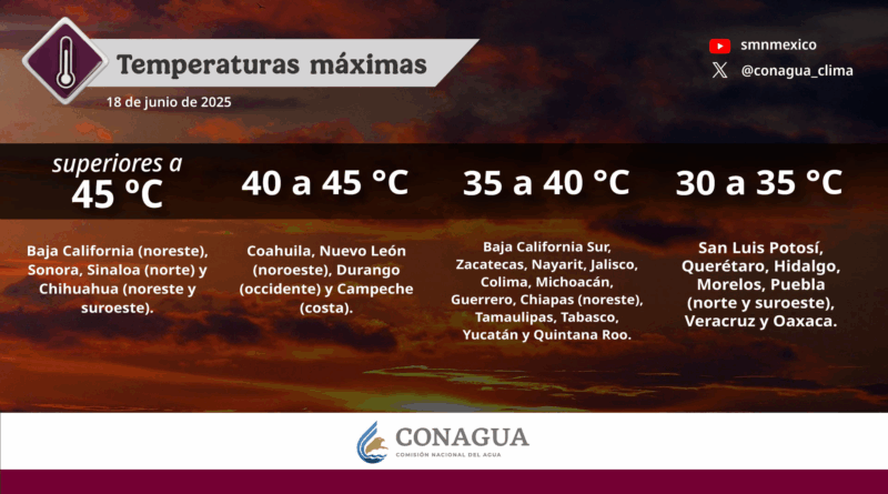 Se prevén temperaturas máximas superiores a 45°C en Baja California, Sonora, Sinaloa y Chihuahua