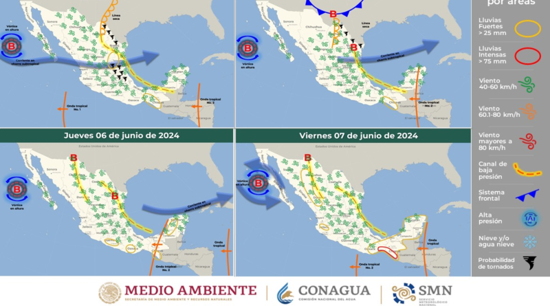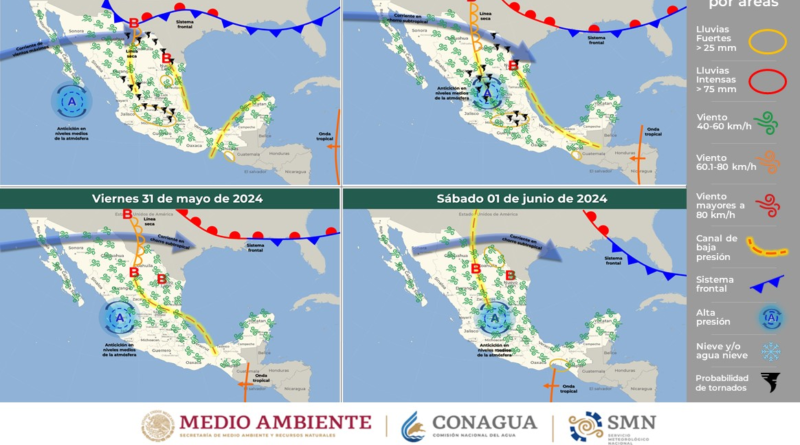 Hoy, canales de baja presión sobre el norte, centro, sur y sureste de México, así como en la Península de Yucatán, inestabilidad
