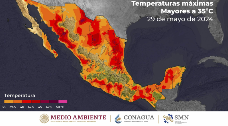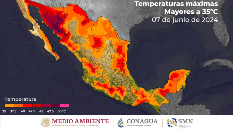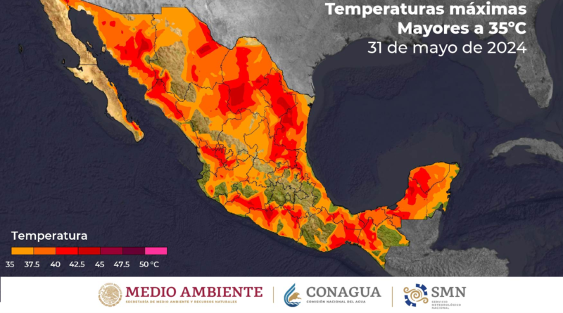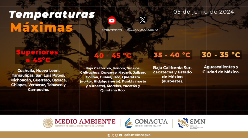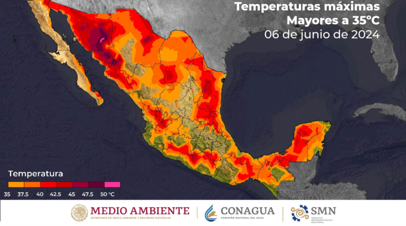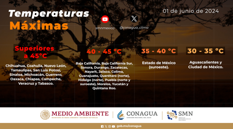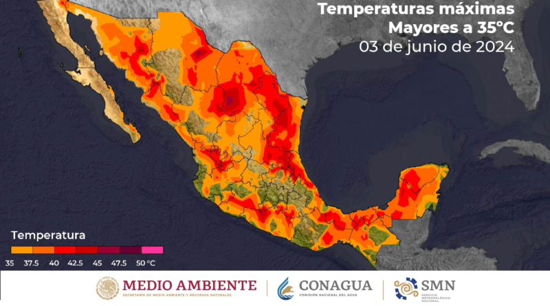Continuará el ambiente de caluroso a muy caluroso en gran parte del país, con temperaturas máximas superiores a los 40°C en 18 entidades