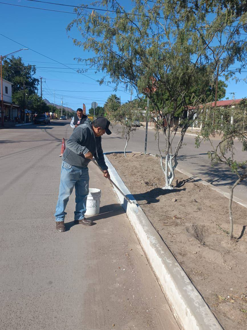 Personal de la dependencia, atendiendo instrucciones del presidente municipal, trabajó en el encalado de un amplio tramo del camellón del bulevar Héroe de Nacozari, en la colonia Libertad.